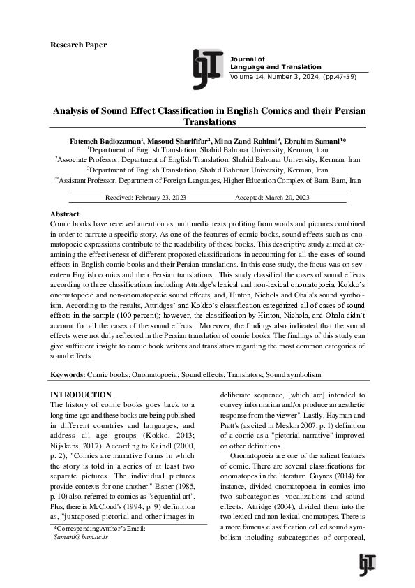 (PDF) Analysis of Sound Effect Classification in English Comics and ...