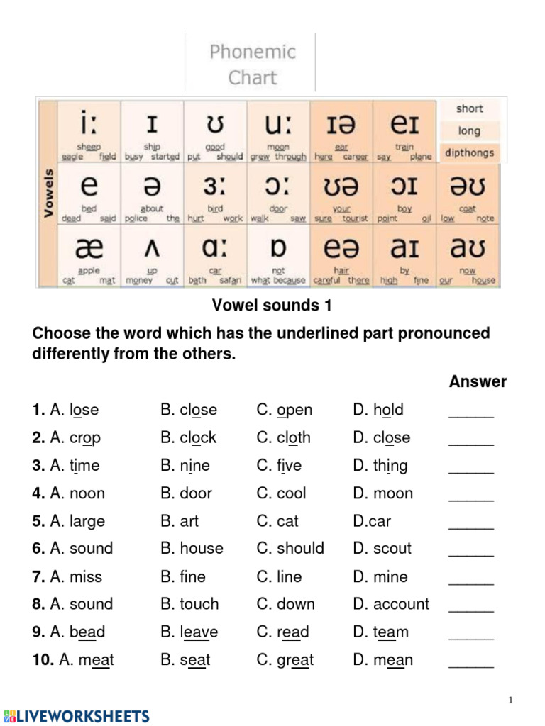 VOWEL SOUND CHART: English ESL worksheets pdf & doc