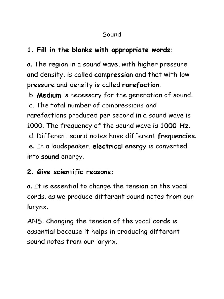Sound Worksheet 1-KEY | PDF - Worksheets Library