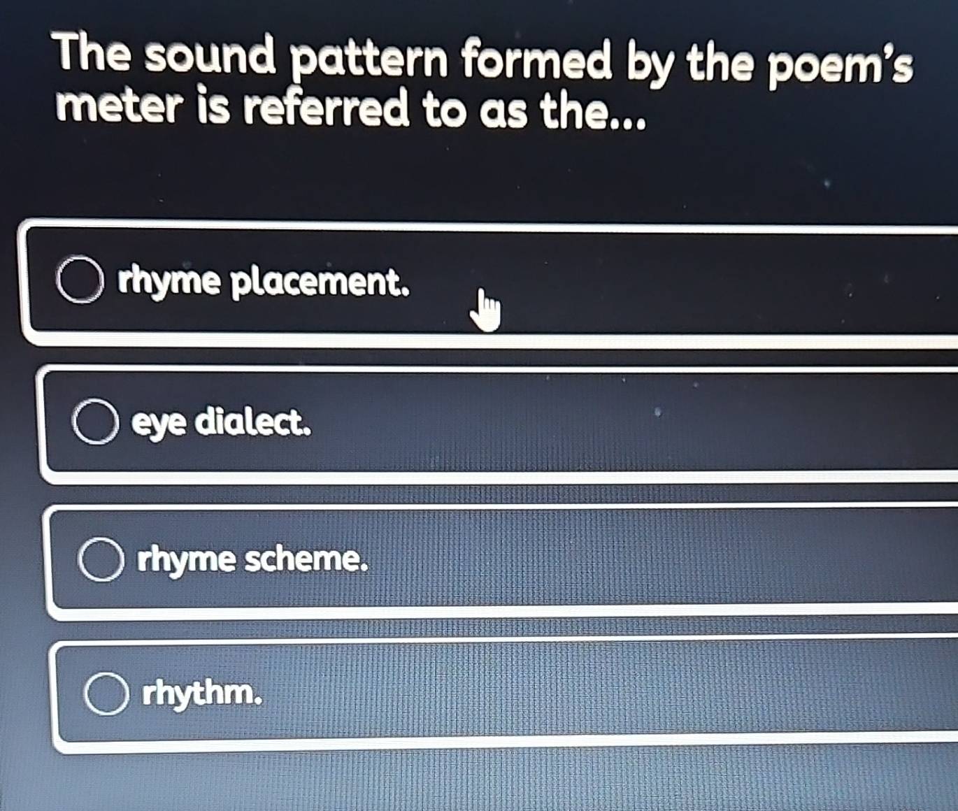 Solved: The sound pattern formed by the poem's meter is referred to as ...