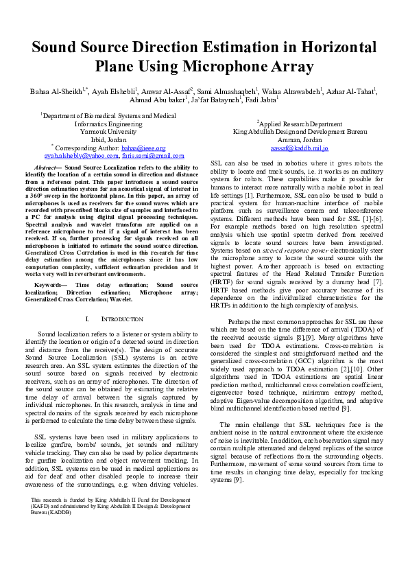 (PDF) Estimation of Sound Source Direction Using Fourier Transformation ...