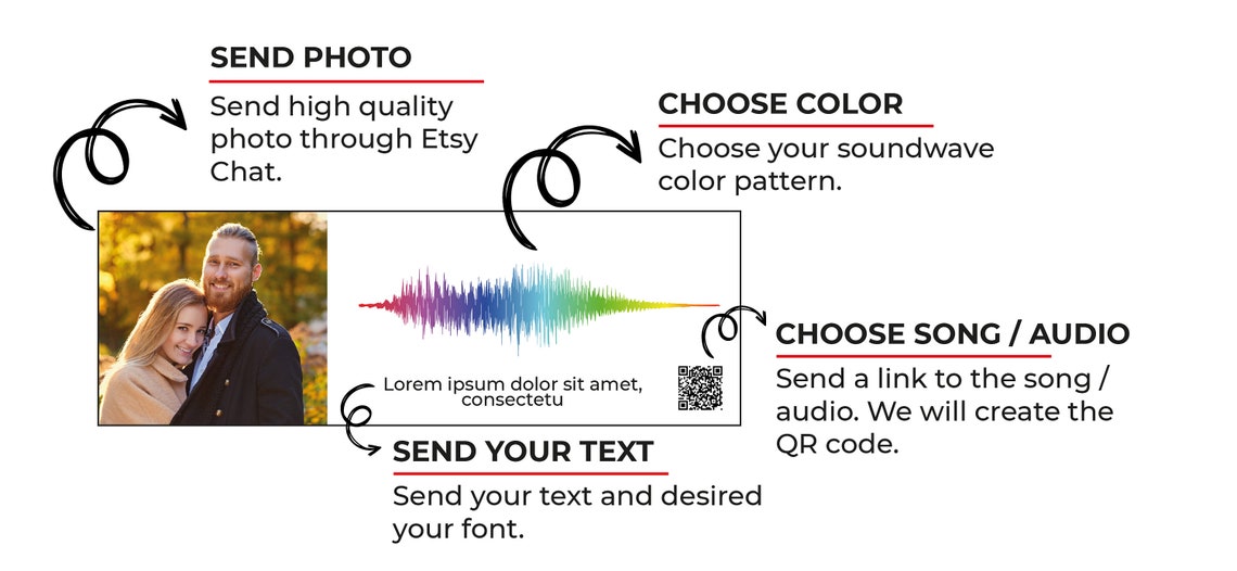 Personalized Sound Wave Photo PLAYABLE QR CODE His Gift Her | Etsy
