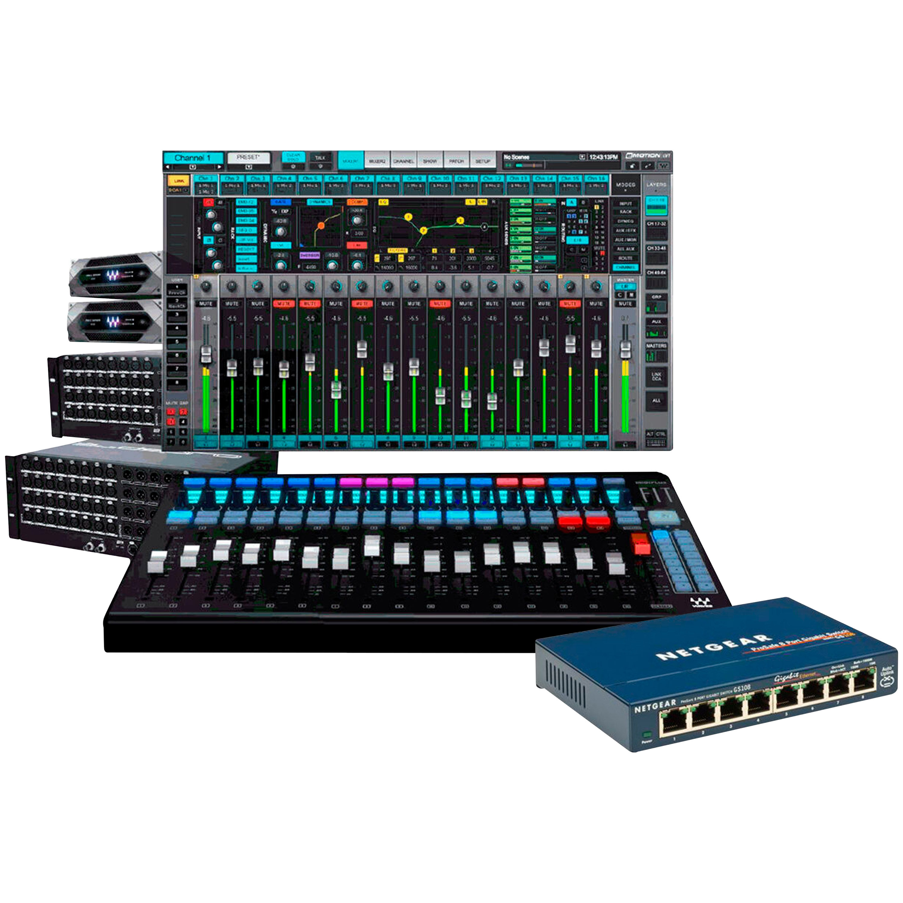 Waves eMotion LV1 64-Channel Mixer + Axis Scope SoundGrid System ...