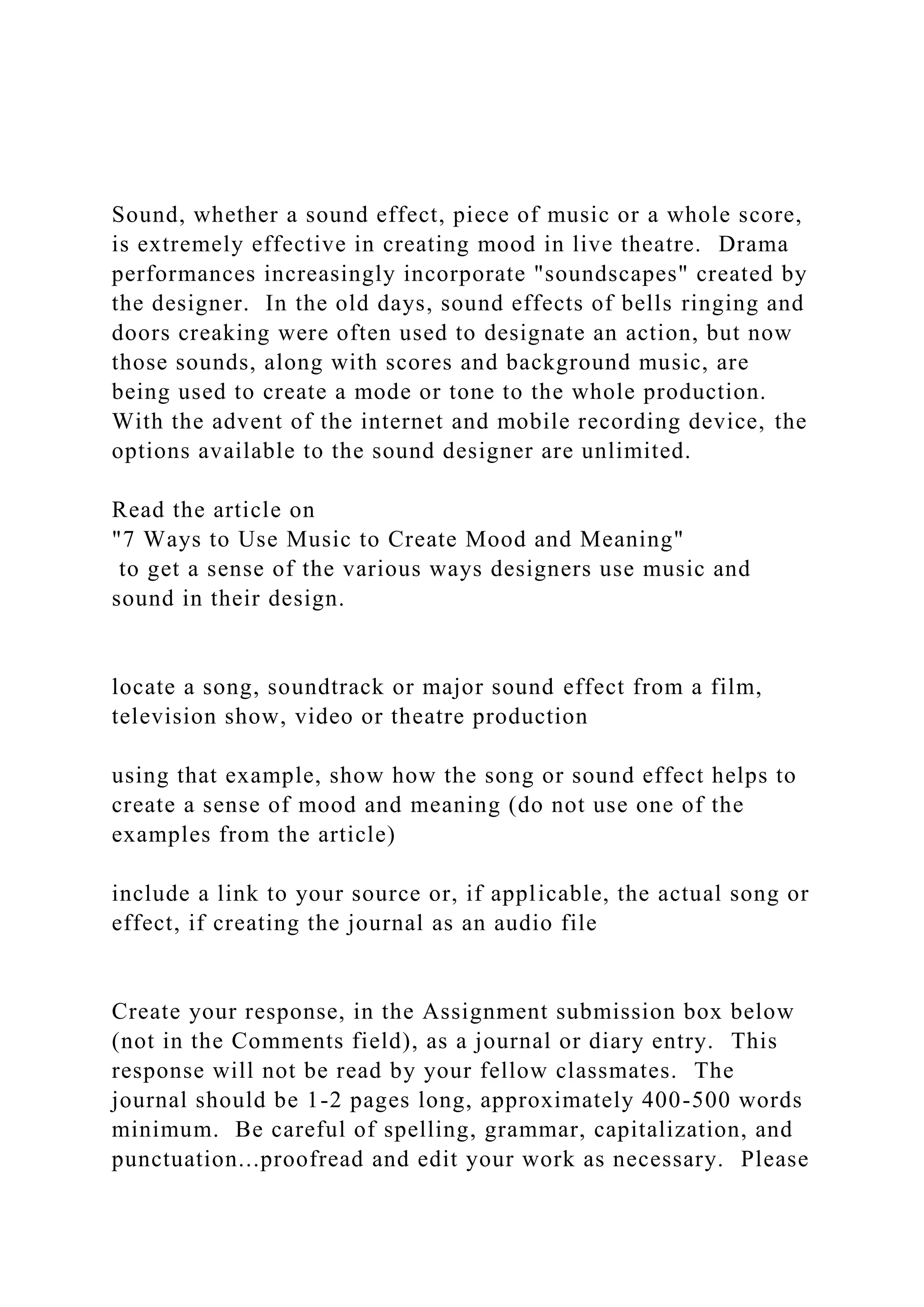 Film Music Essay Prompt prompt - Film Music Essay Prompt Length: 5-6 ...