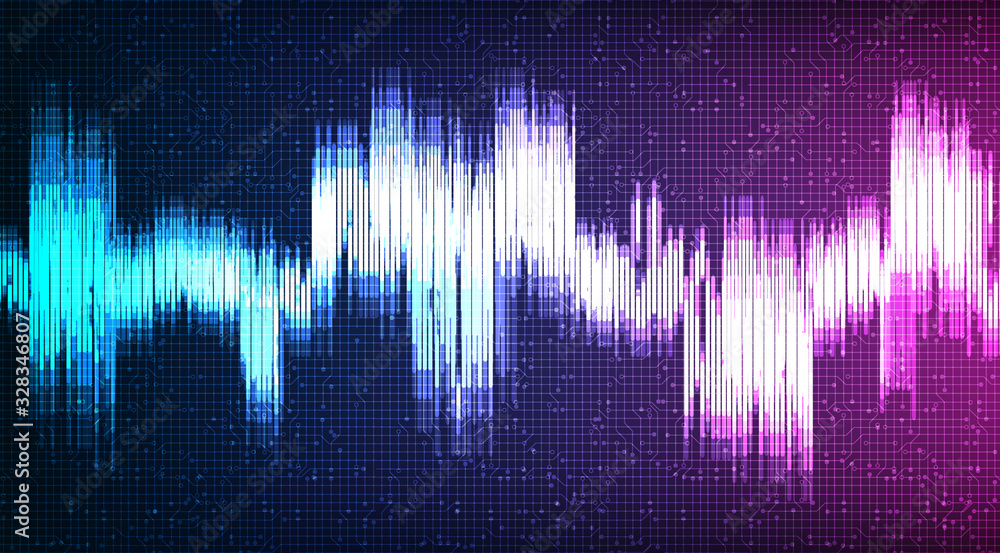 Violet digital Sound Wave on technology Background and earthquake wave ...