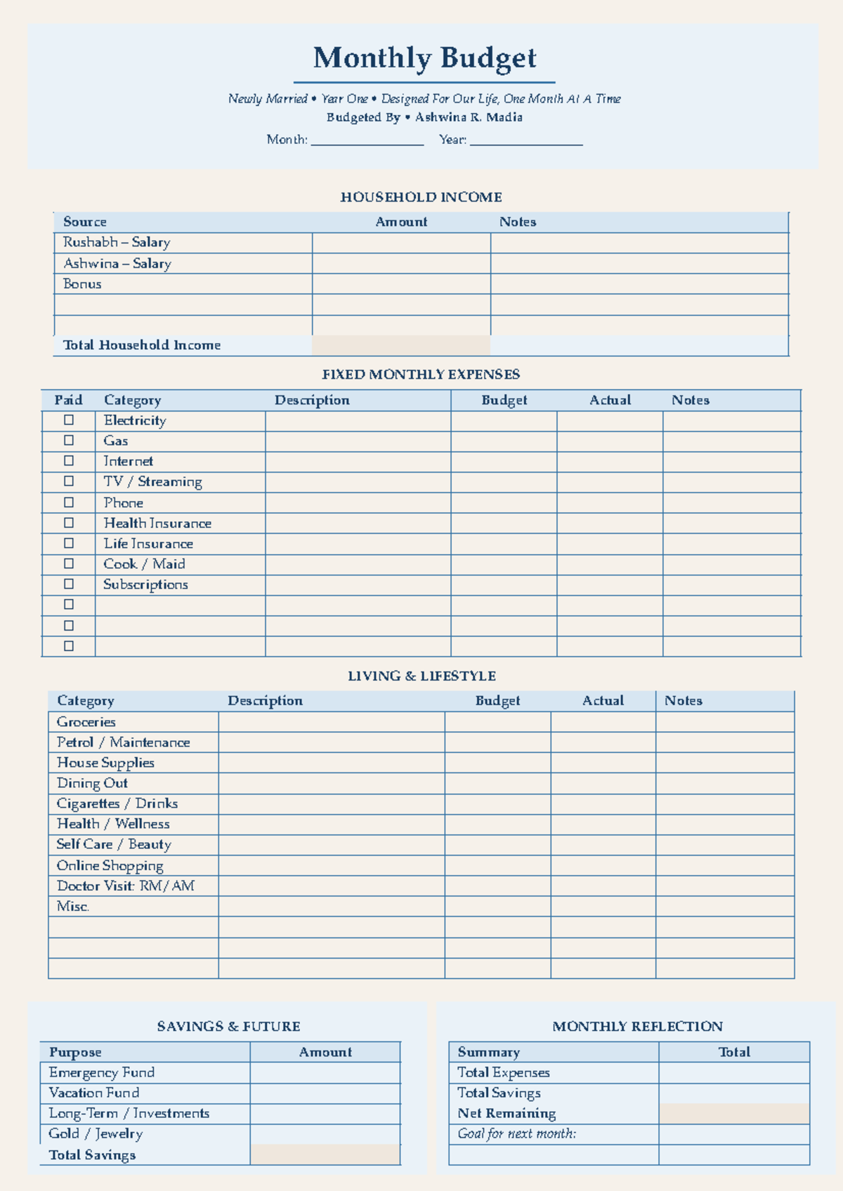 Monthly Budget Plan for Newlyweds: Year One Overview - Studocu