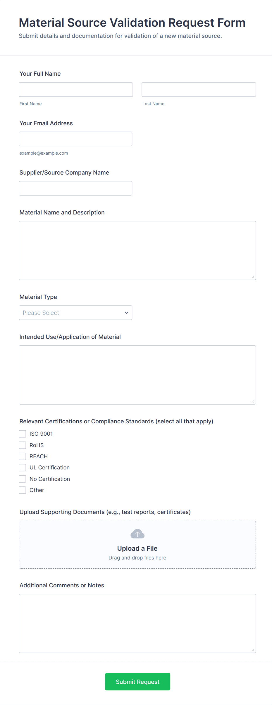 Material Source Validation Request Form Form Template | Jotform
