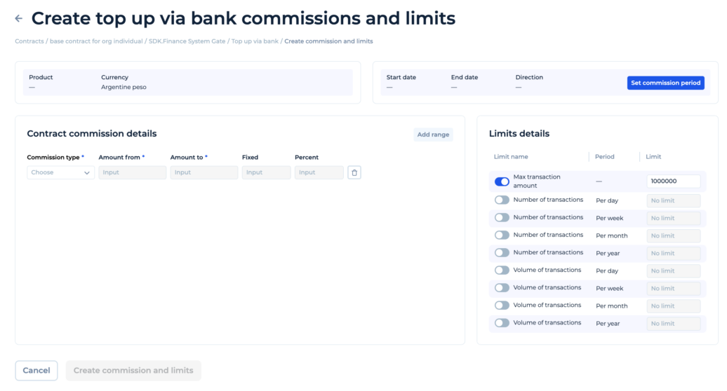 Create commission and limits (in Contract) | SDK.finance - White-Label ...