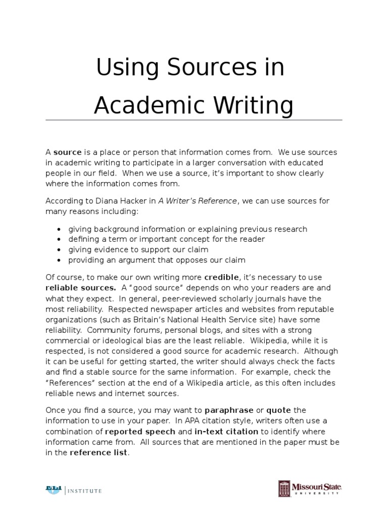 Incorporating Information From Sources Into Your Writing – A Guide for ...