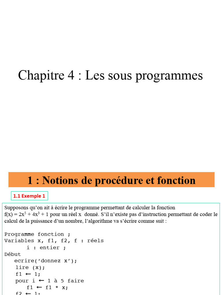 13-1- Algorithme : Les sous programmes (Introduction + les fonctions ...