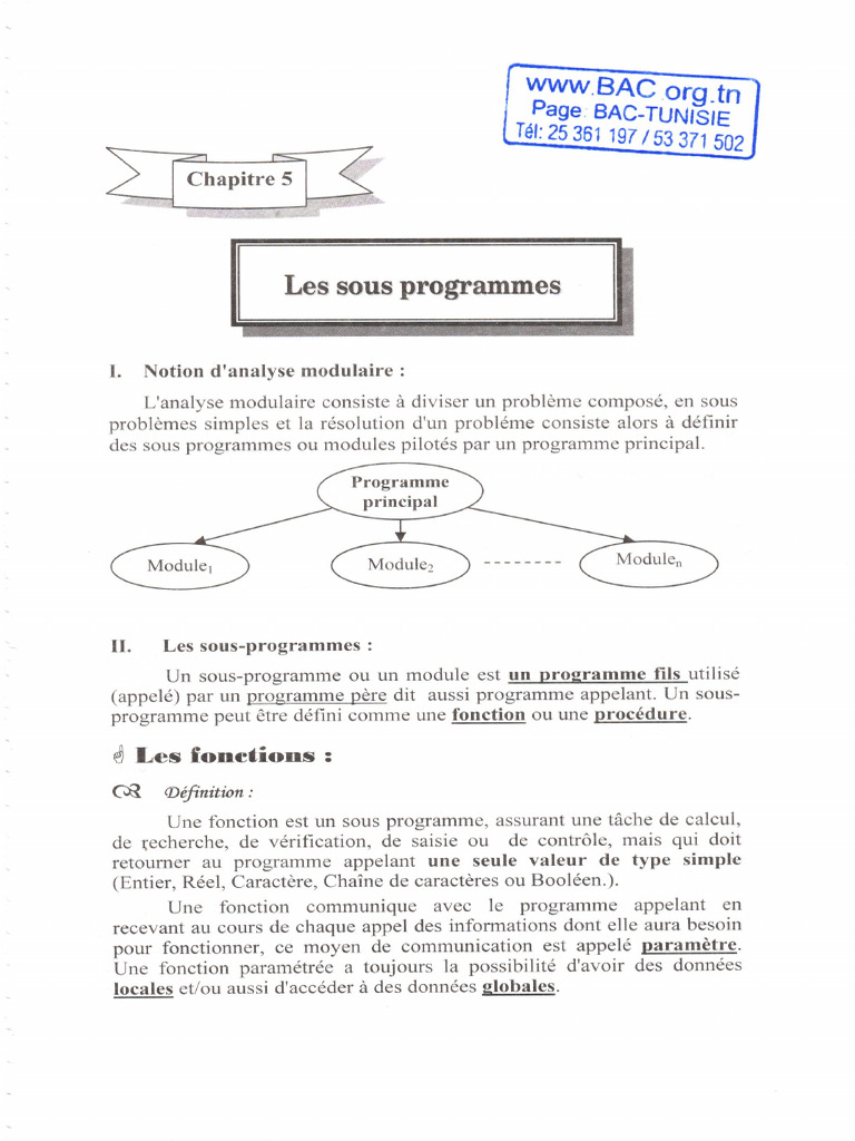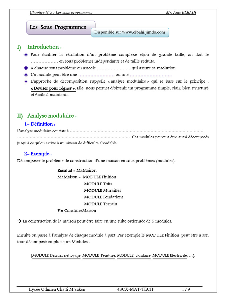 (PDF) Chapitre 5: Les sous-programmes Leçon N°1 : l'analyse modulaire