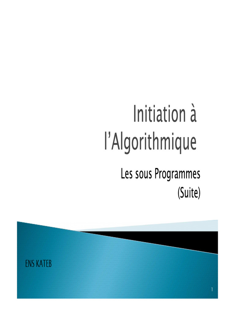 Introduction à l'Algorithmique et aux Sous-programmes | PDF | Programme ...