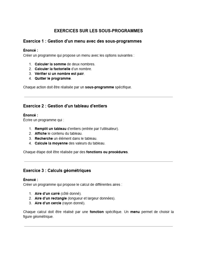 EXERCICES SUR LES SOUS-PROGRAMMES | PDF