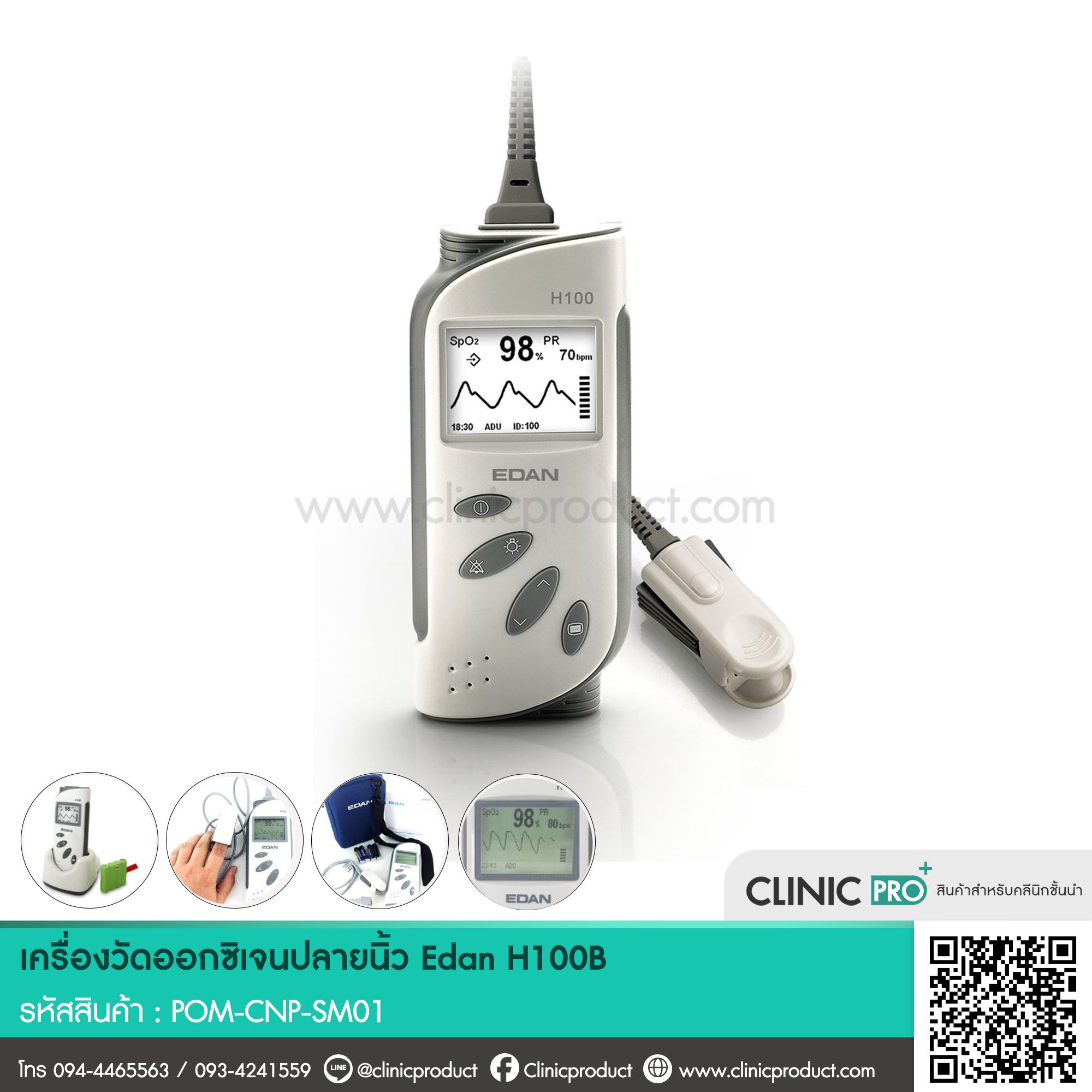 เครื่องวัดออกซิเจน ปลายนิ้ว EDAN รุ่น H100B (พร้อมสาย SpO2 ผู้ใหญ่ ...