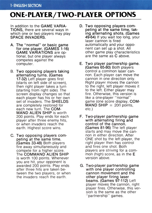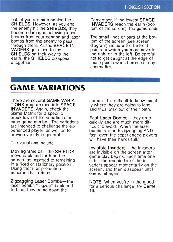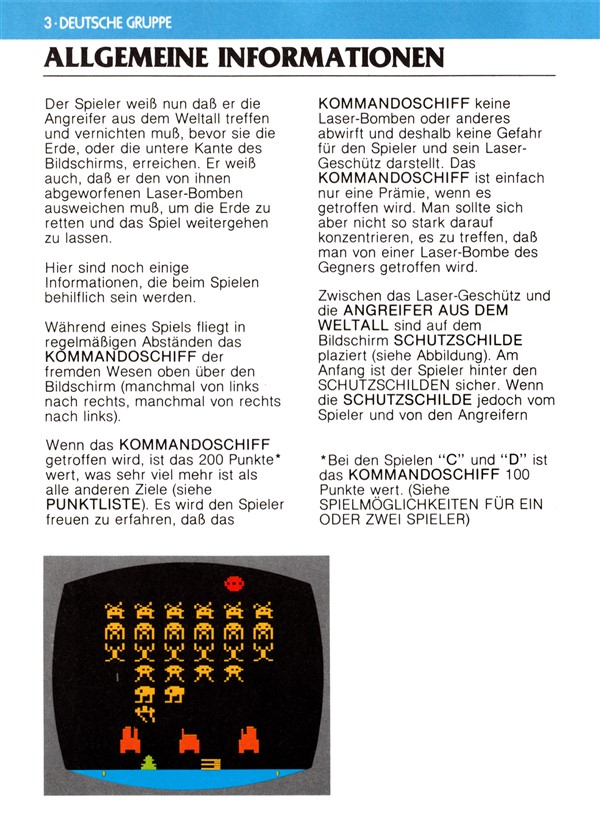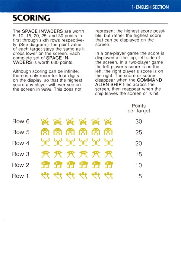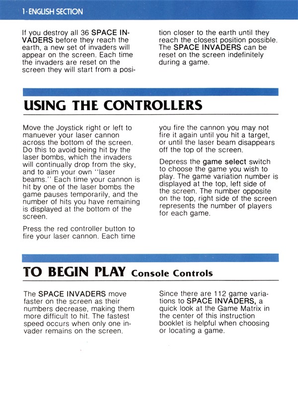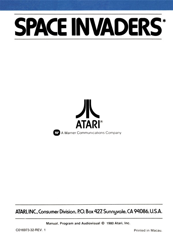 Space Invaders Instruction Manual - Atari 2600 (1980) : Free Download ...