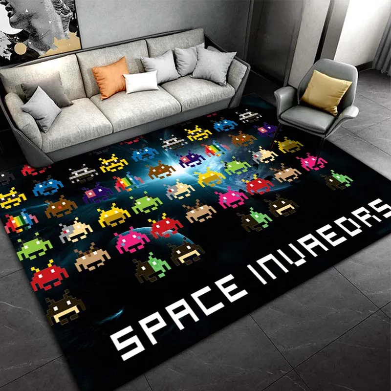 Retro-Inspired Plush Soft Polyester Space Invader Area Rug, Multicolor ...