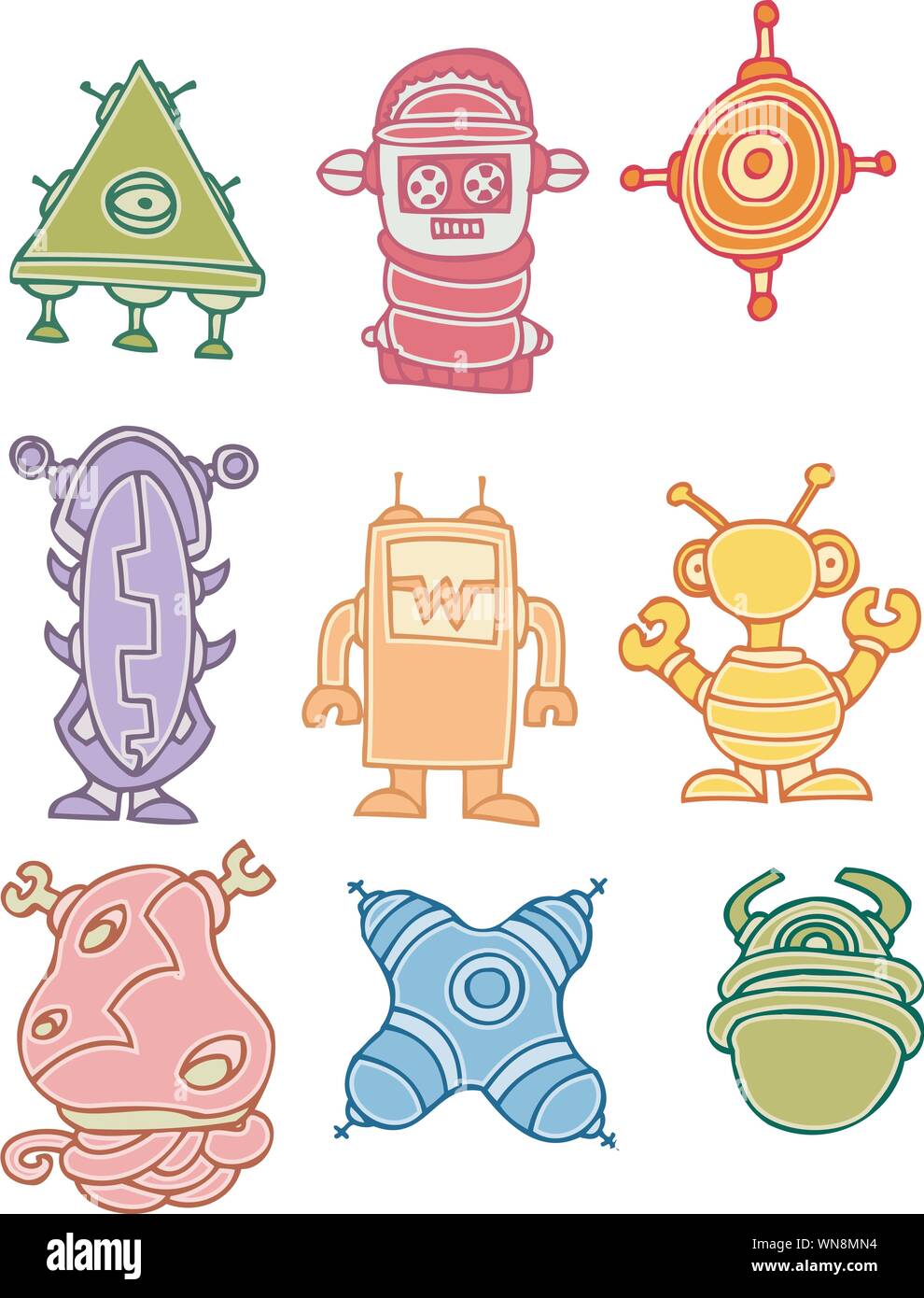 Aliens vector characters. Space invaders monsters with UFO illustration ...