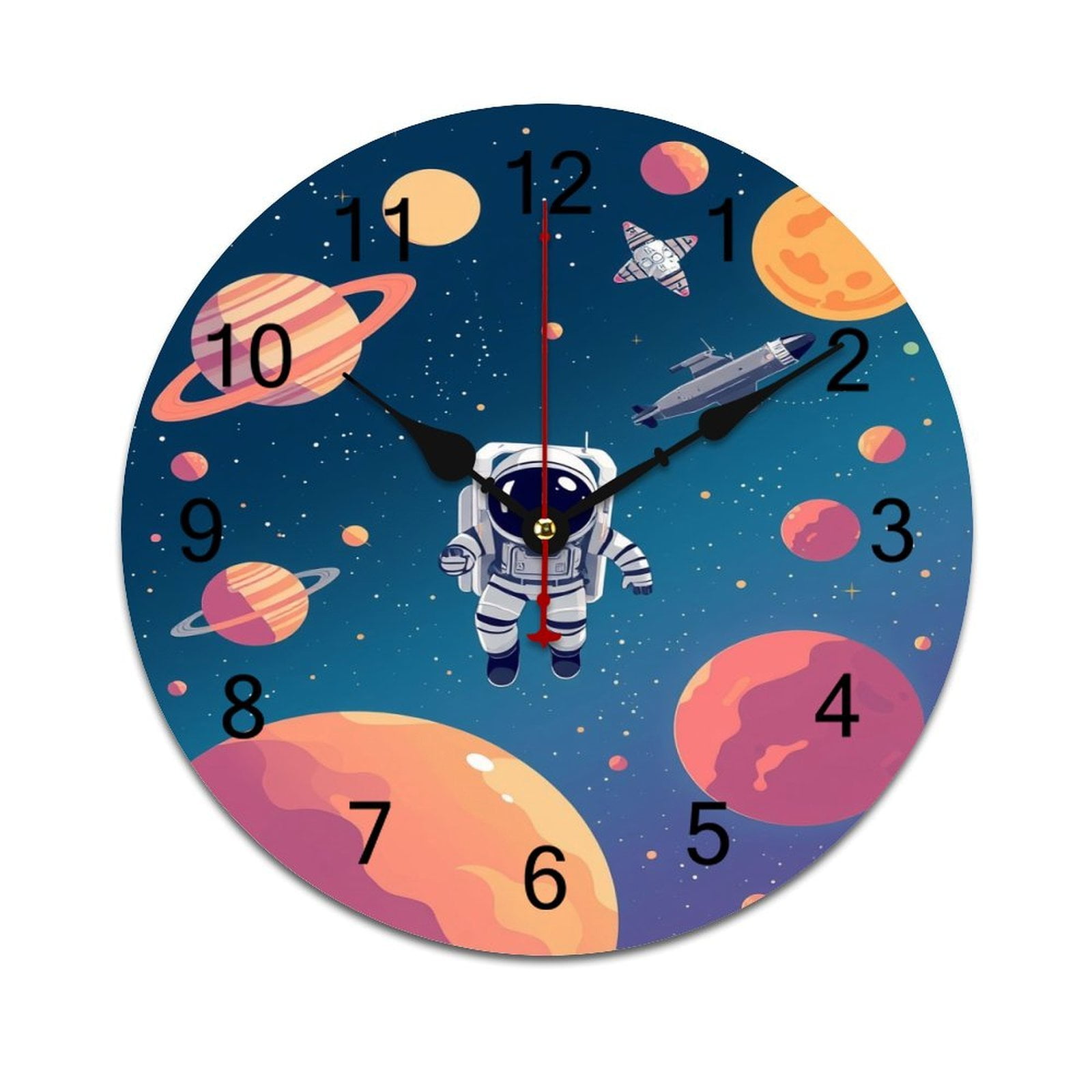 Spaceman Floats Planets Stars Time Decorative Wall Clocks Round Large ...