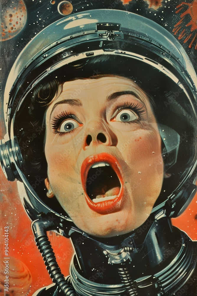 a female astronaut screaming in fear in a nasa space suit with a helmet ...