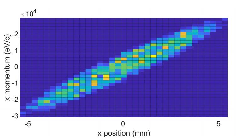 Phase space plot of electrons during 10 kV simulation. | Download ...