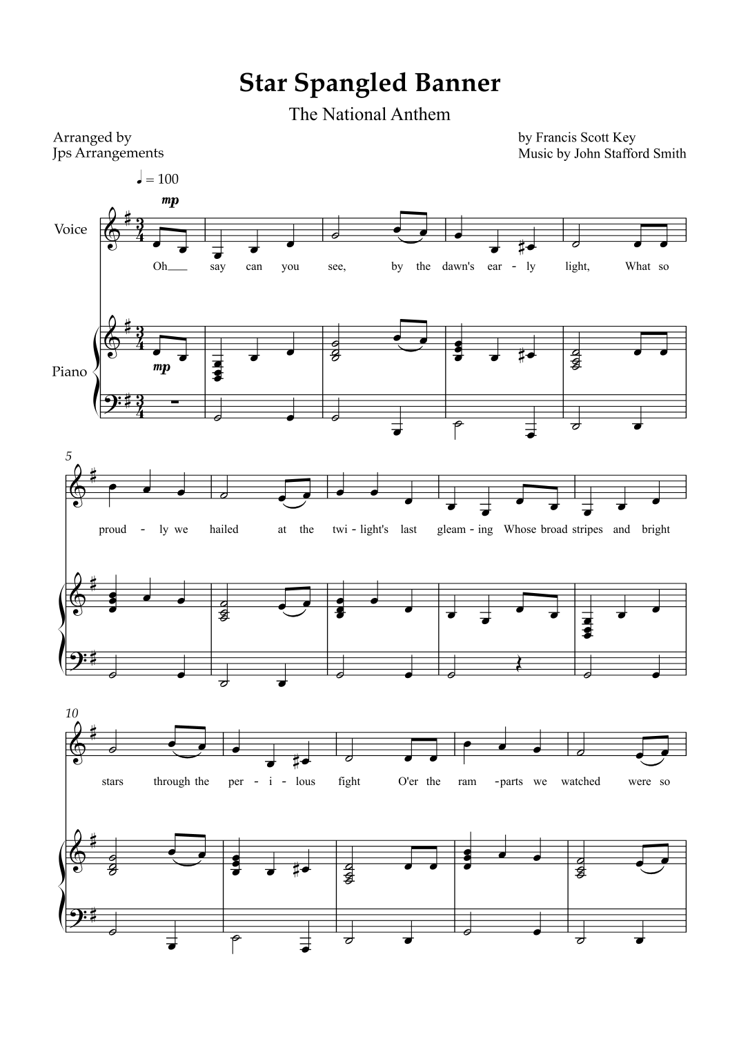 The Star-spangled Banner National Anthem - Digital Sheet Music ...