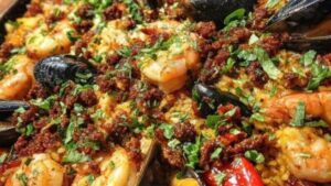 Seafood Paella (without chicken/meat) (Spanish rice dish cooked in a ...