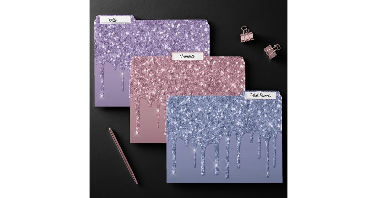 Dripping Glitter | Muted Dusty Pastel Sparkle File Folder | Zazzle