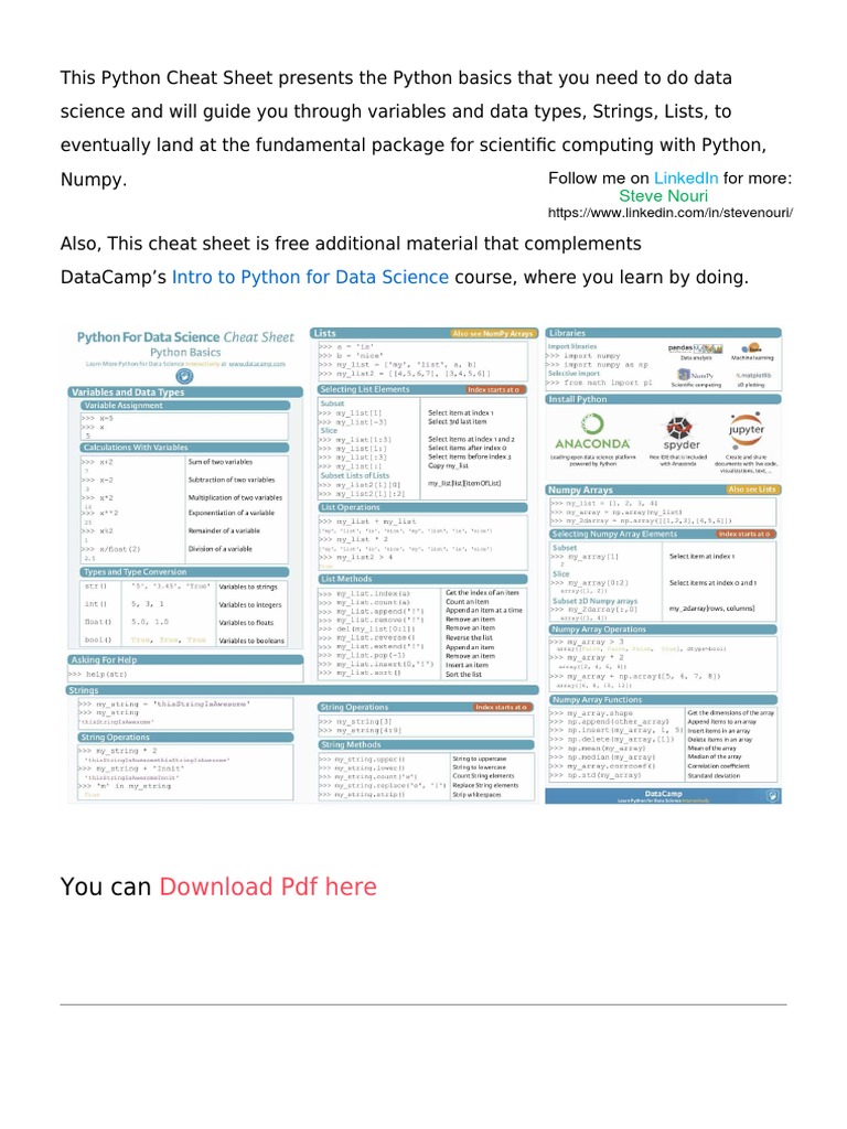 Python Cheat Sheet PDF -Free Download