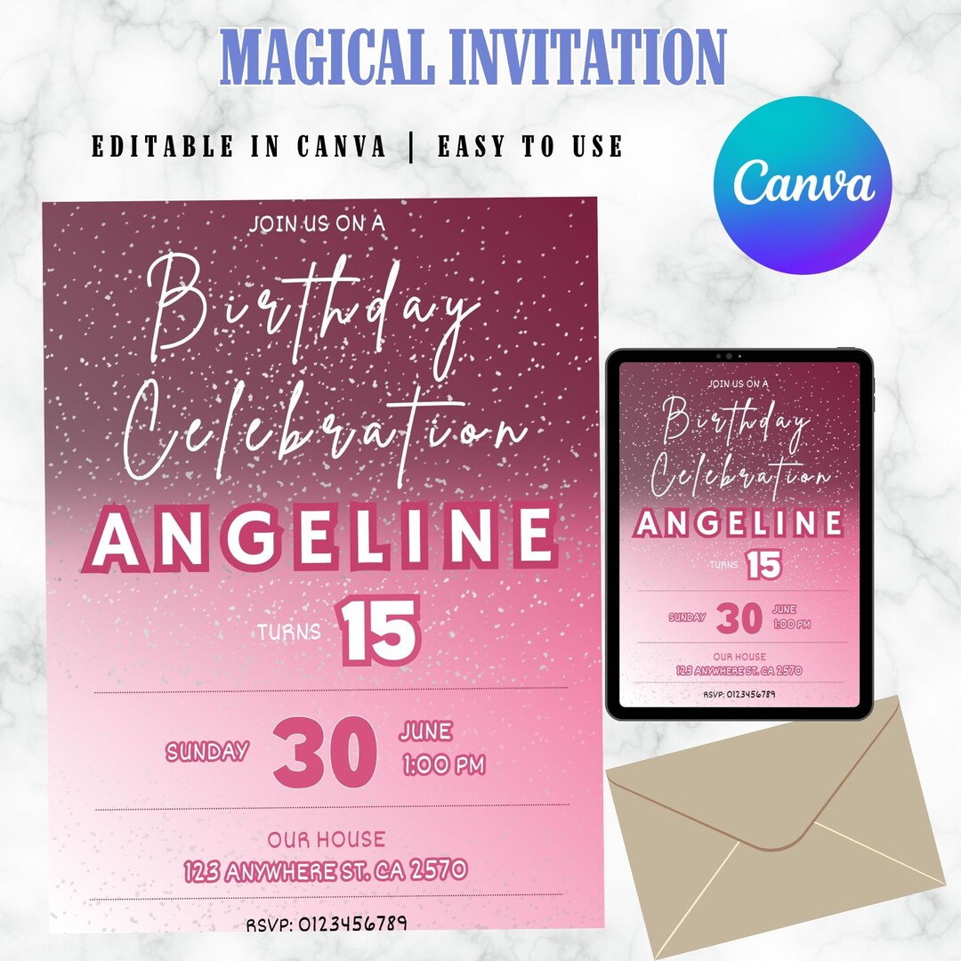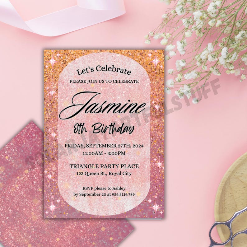 Editable Sparkle Birthday Invitation, Party Invitation, Invitation ...