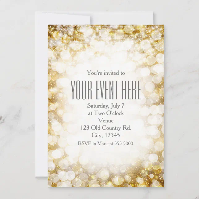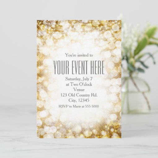 Champagne Gold Sparkling Lights Party Invitations | Zazzle