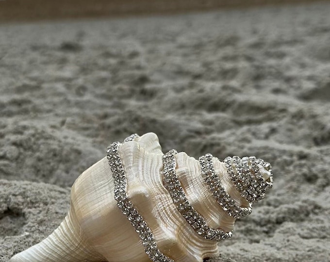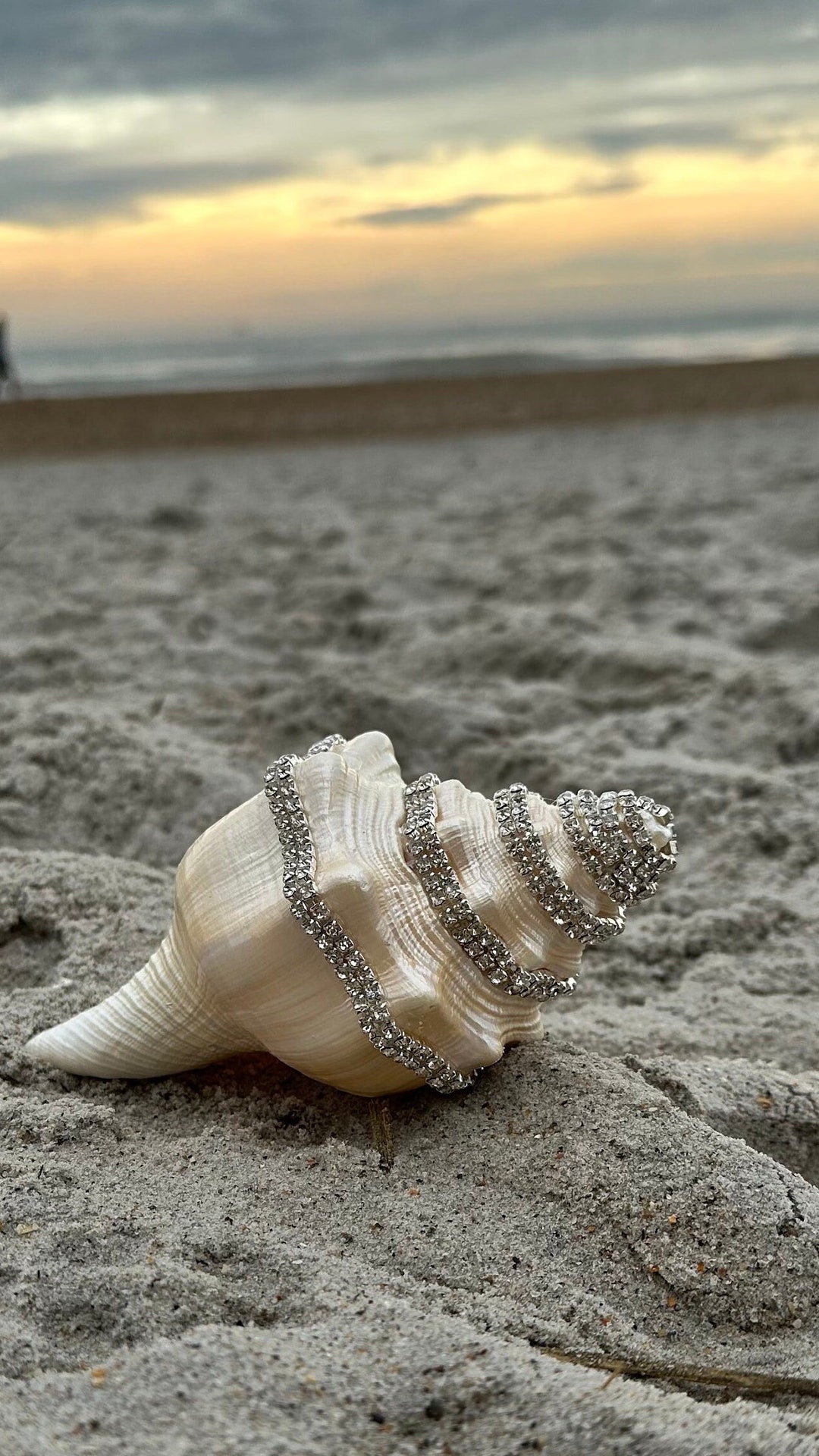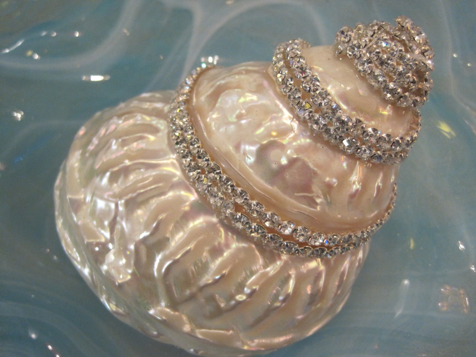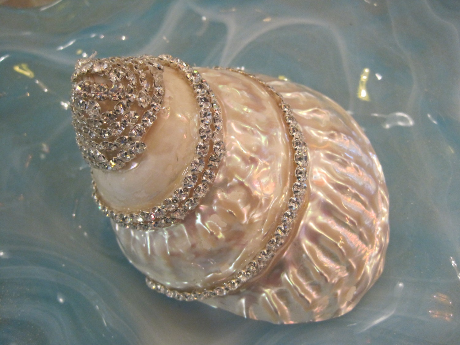 Beach Decor Embellished Pearlized Wavy Top Turbo Shell With Swarovski ...