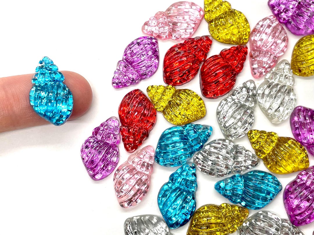 50Pcs Cute Glitter Colorful Shell Flatback Resin Cabochon For | Etsy