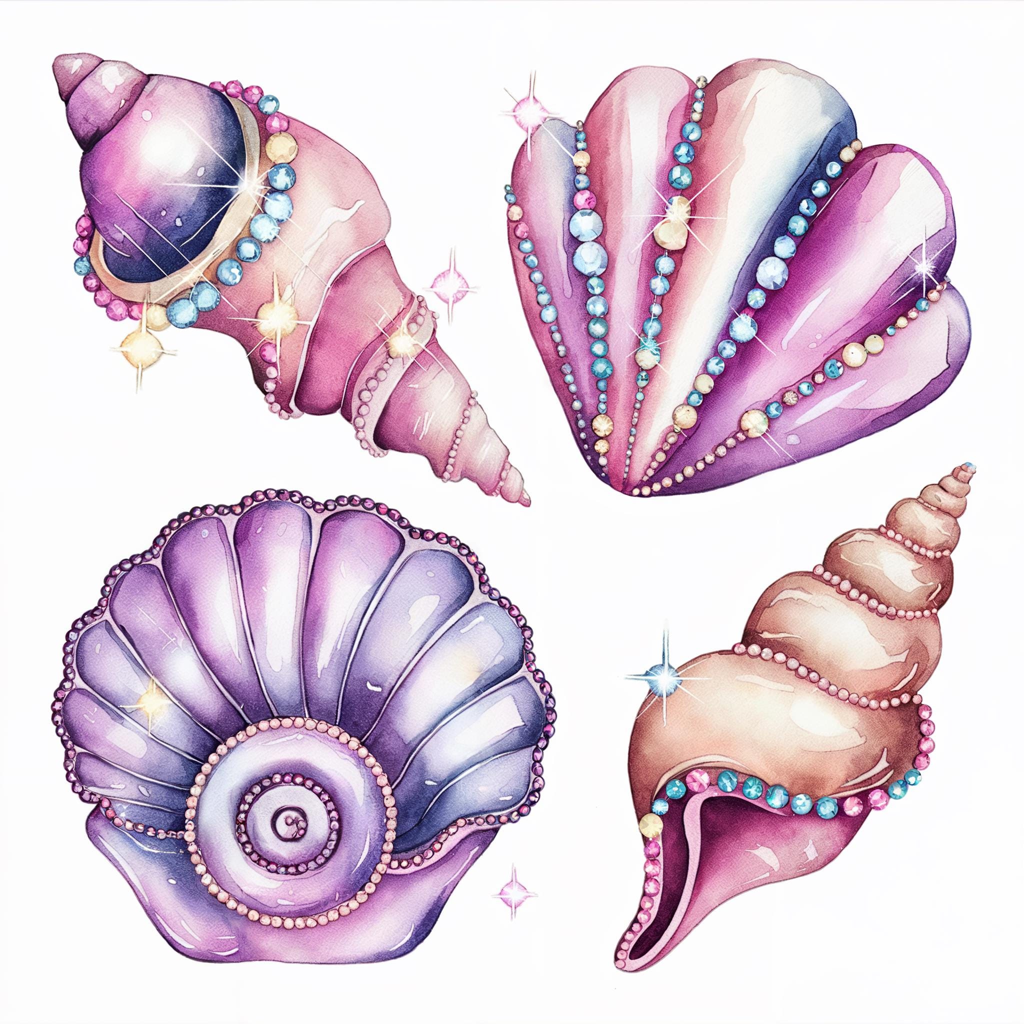 Seashell Clipart, Watercolor Seashells, Glitter Shells Clipart, Beveen ...