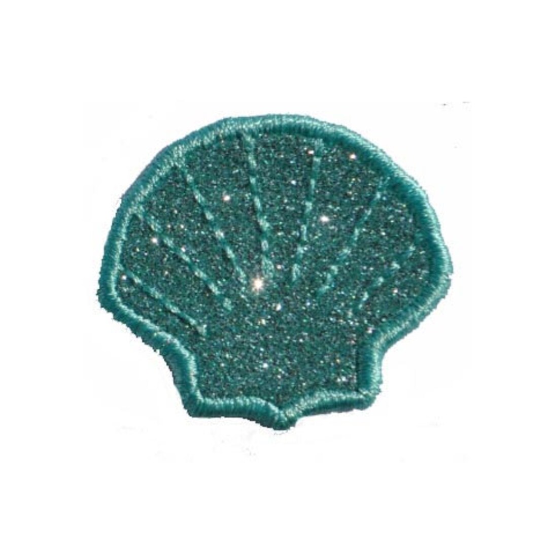 Scallop Seashell Sea Shell 3" Sparkle Glitter Patch 3 Inches Wide Iron ...