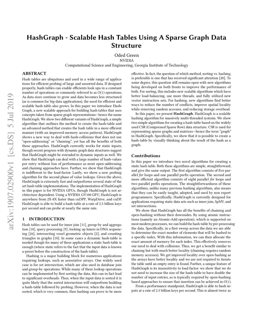 (PDF) HashGraph—Scalable Hash Tables Using a Sparse Graph Data Structure