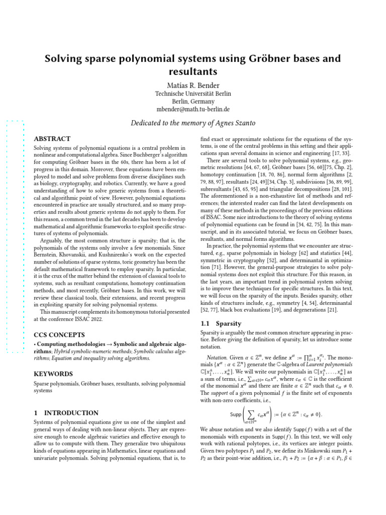 Solving Sparse Polynomial Systems | PDF | Eigenvalues And Eigenvectors ...
