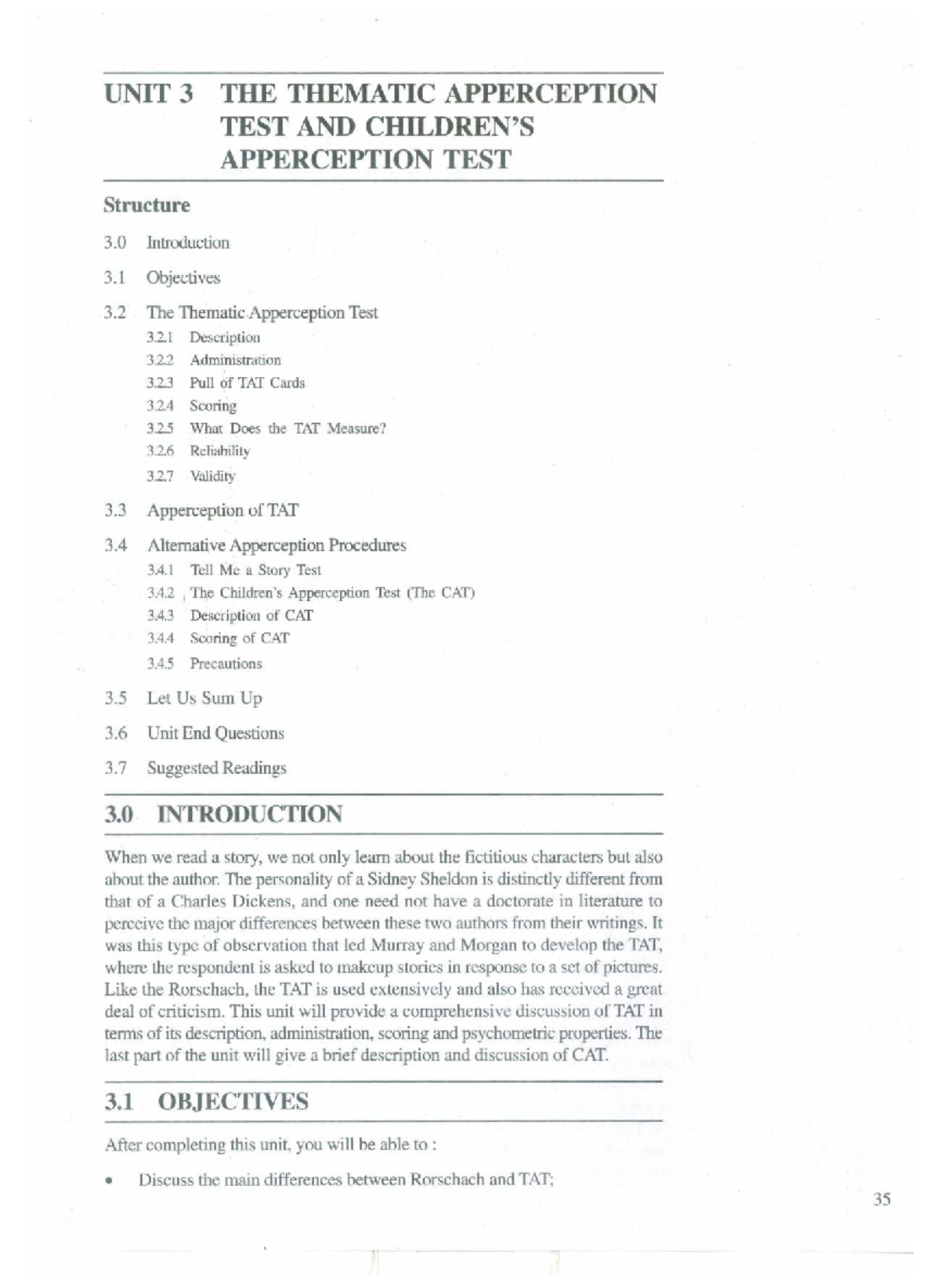 Unit 3: The Thematic Apperception Test (TAT) and Apperception Test ...