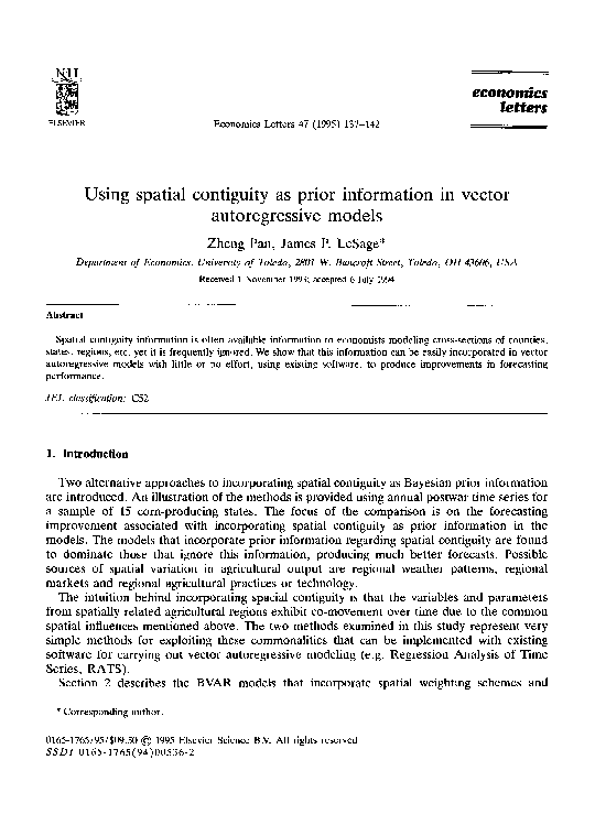 (PDF) Incorporating Spatial Contiguity in VAR Models