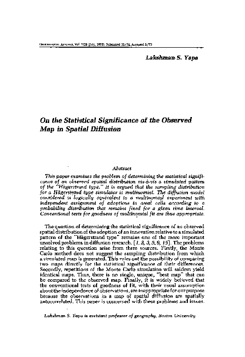 (PDF) On the Statistical Significance of the Observed Map in Spatial ...