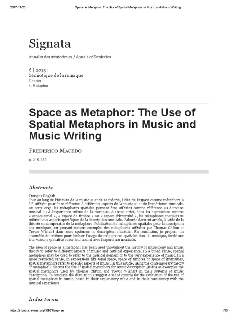 (PDF) Space as Metaphor: The Use of Spatial Metaphors in Music and ...
