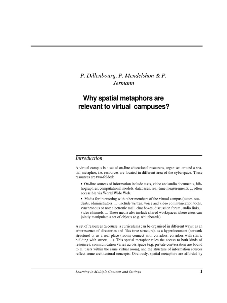 Why Spatial Metaphors Are Relevant To Virtual Campuses | PDF | World ...