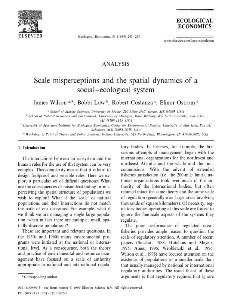 (Wilson, Costanza & Ostrom Et Al, 1999) Scale Misperceptions and The ...