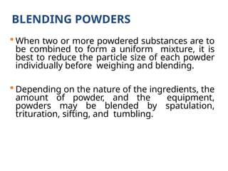 Blending & Mixing Techniques: Trituration, Spatulation, Tumbling, Sifting