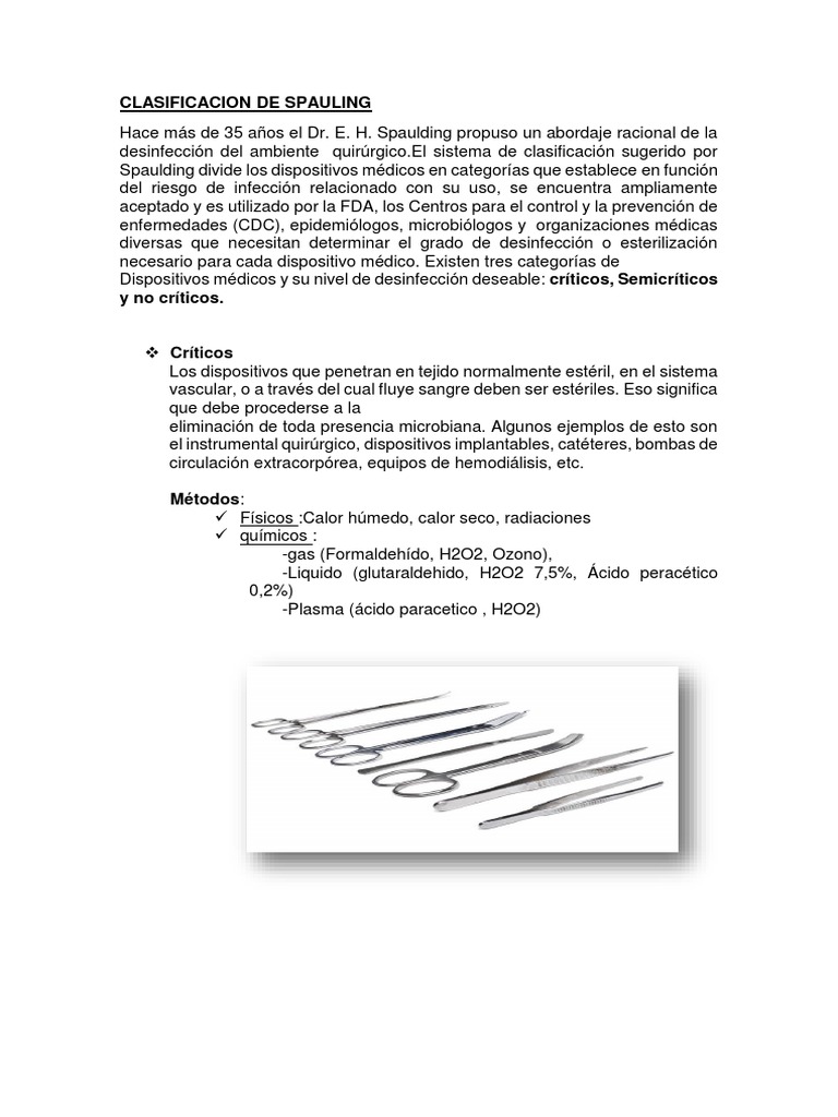 Clasificacion de Spauling-Word | PDF | Esterilización (Microbiología ...