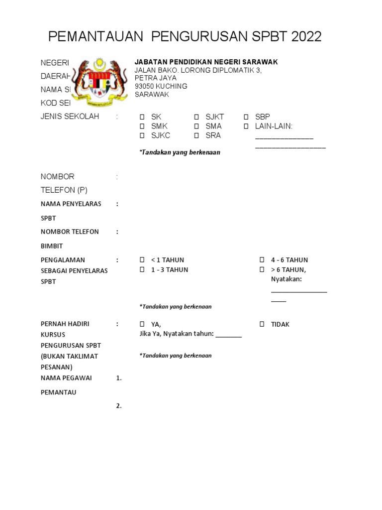 Instrumen Pemantauan Pengurusan SPBT 2022 | PDF