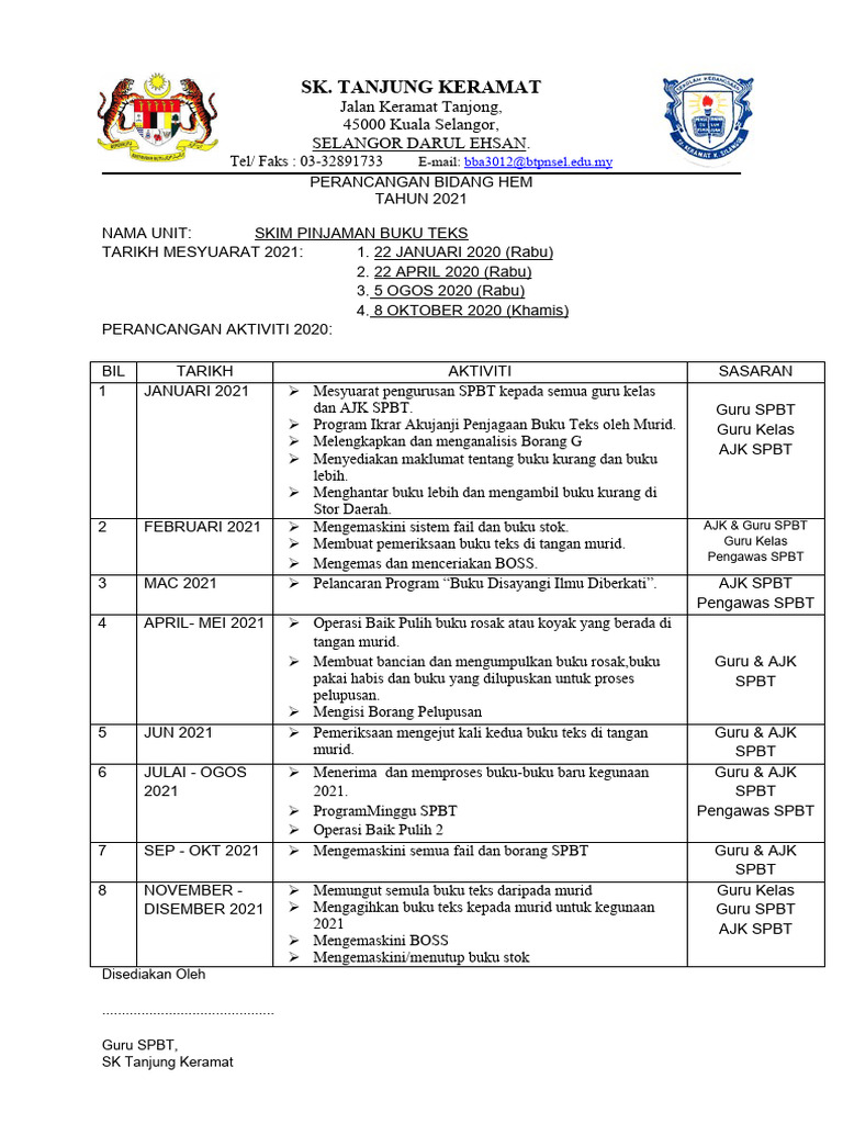 Perancangan Tahunan Aktiviti Unit SPBT | PDF