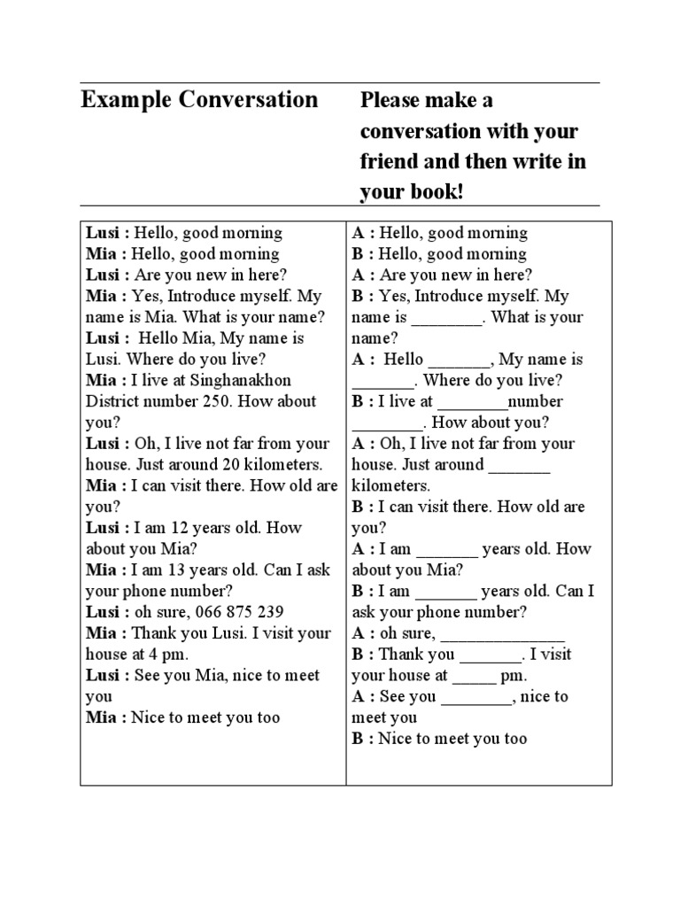 Example Conversation: Please Make A Conversation With Your Friend and ...