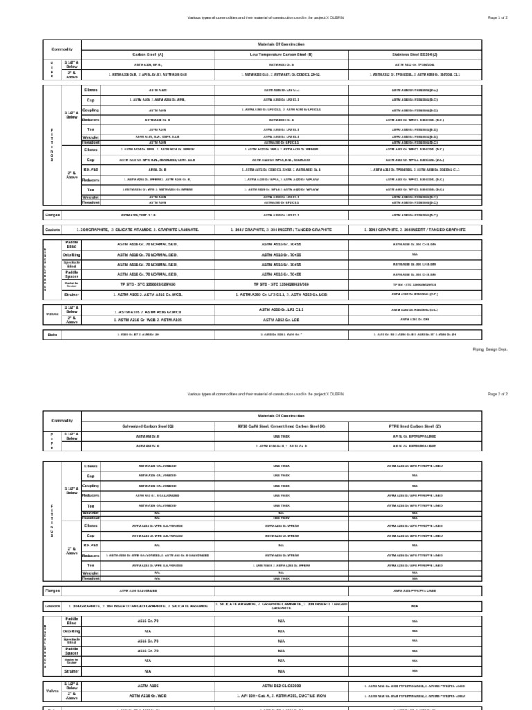 Piping Spec Matrix | PDF