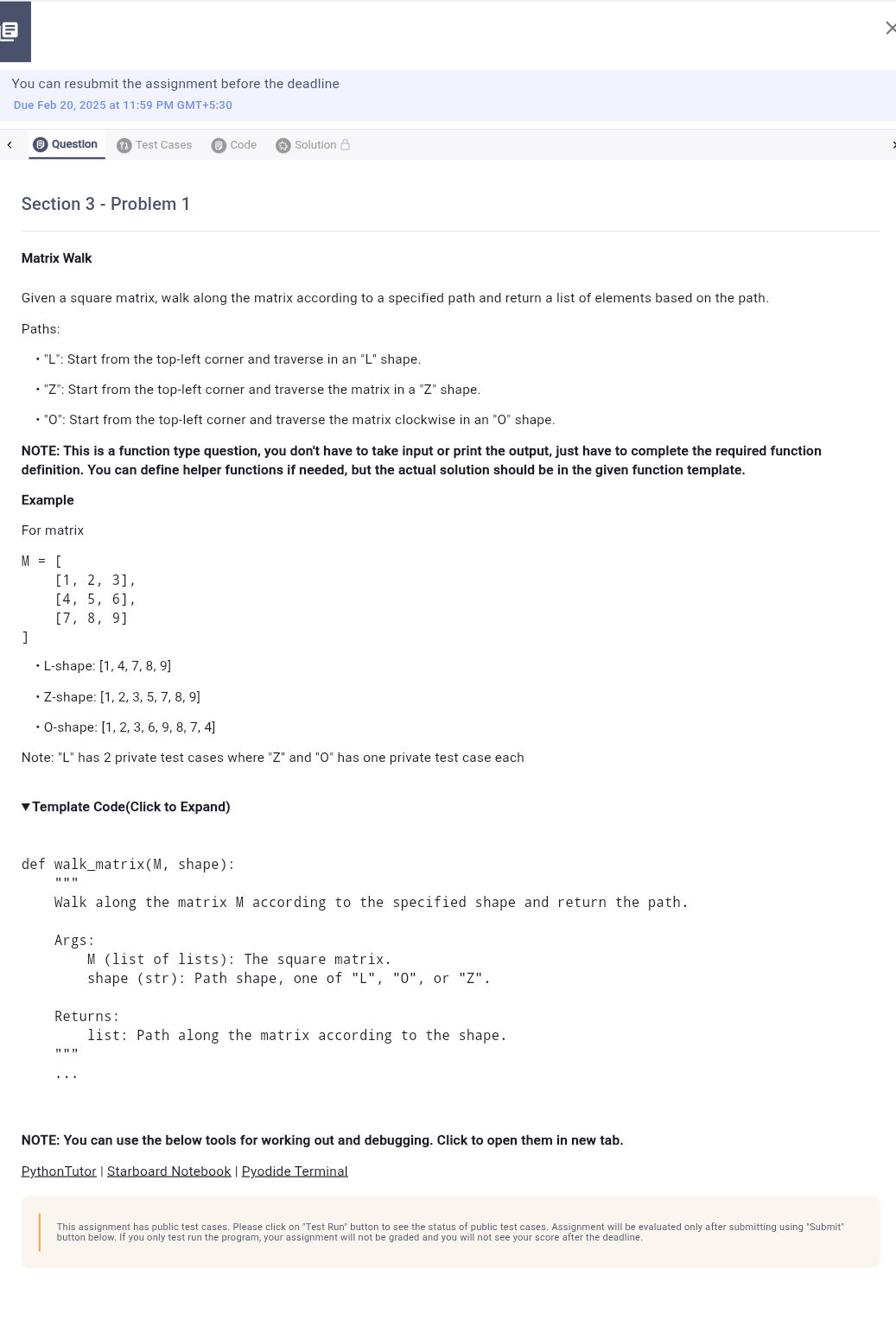 Section 3 - Problem 1 Matrix Walk Given a | StudyX