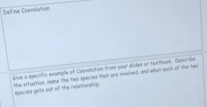 Solved Define Coevolution Give a specific example of | Chegg.com